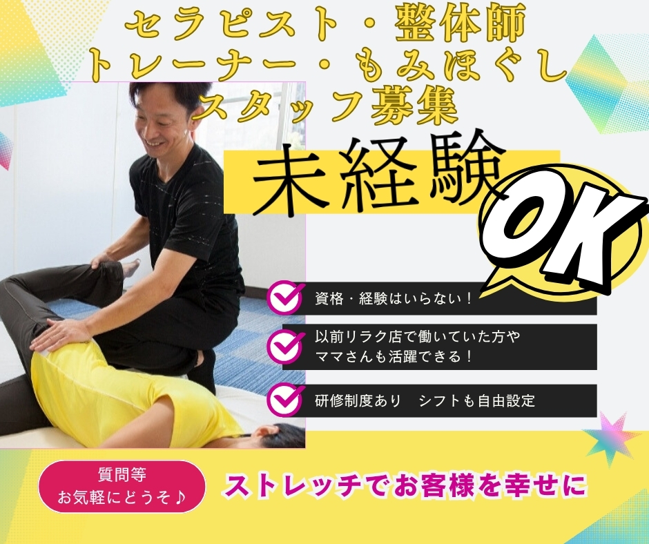 セラピスト・整体師・トレーナー・もみほぐしスタッフを急募!!