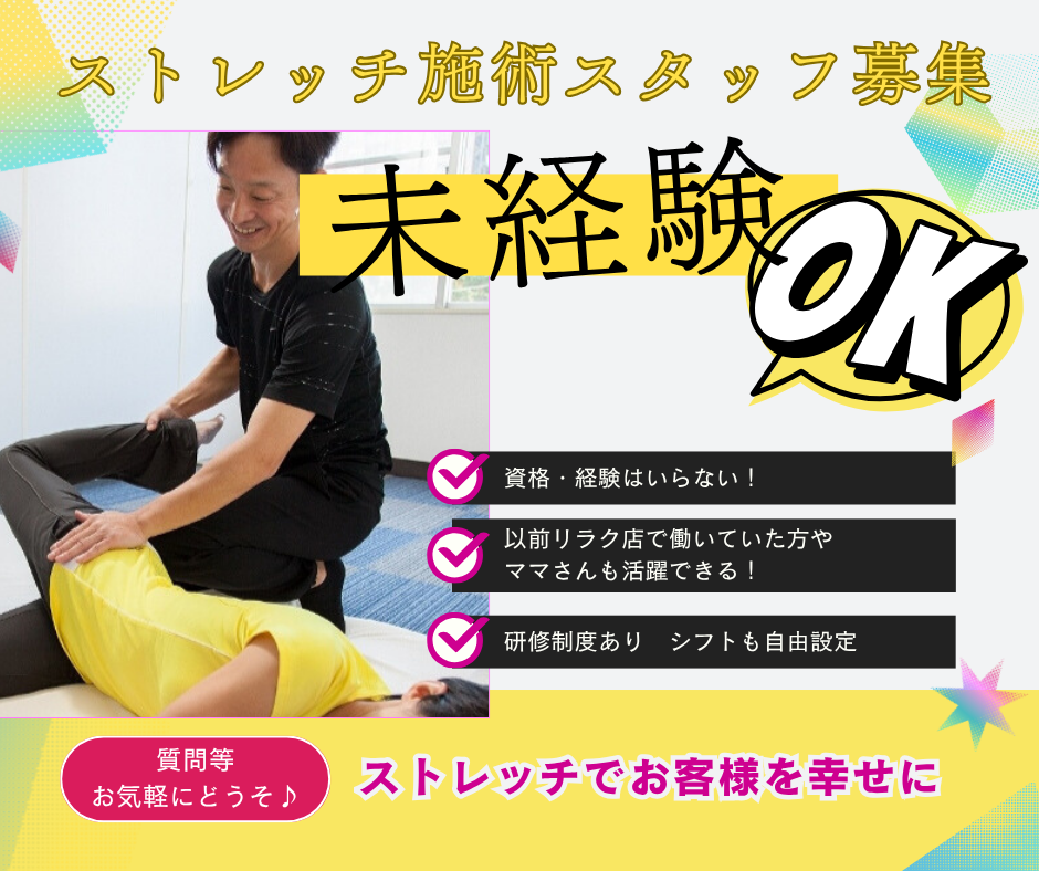 [急募]ストレッチセラピスト★未経験者歓迎・研修無料